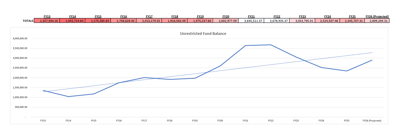 ✅ Fact: The unrestricted fund balance was strategically used for one-time investments in curriculum, staffing, and programs. Even after a planned $1.1 million reduction, the balance remains within Board policy. At the same time, $1.67 million in staffing reductions (FY25–FY26) have been implemented to stabilize ongoing costs.